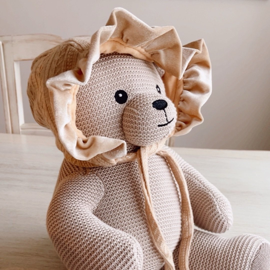 Color beige forrado por dentro y tela con diseño y bordes de plush.