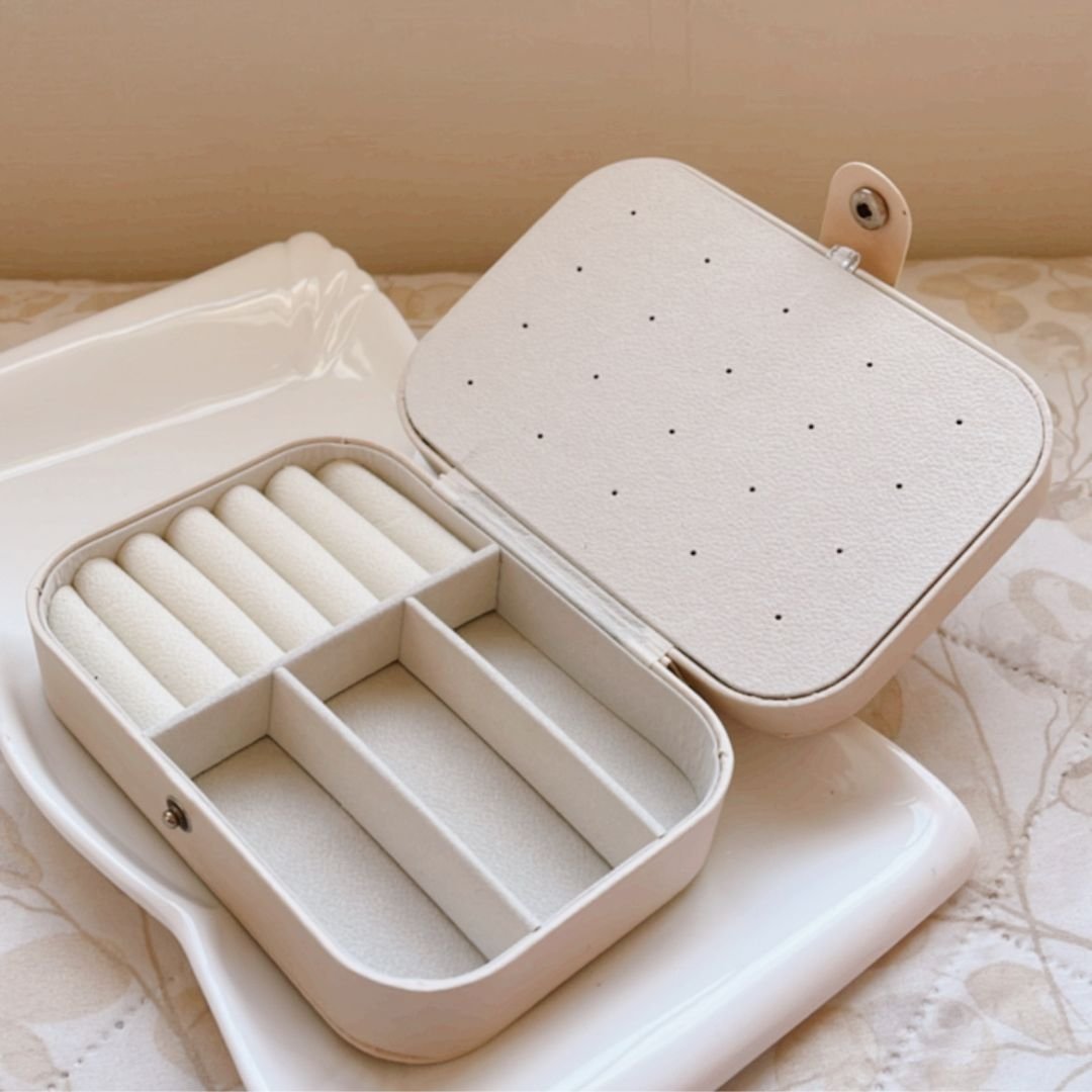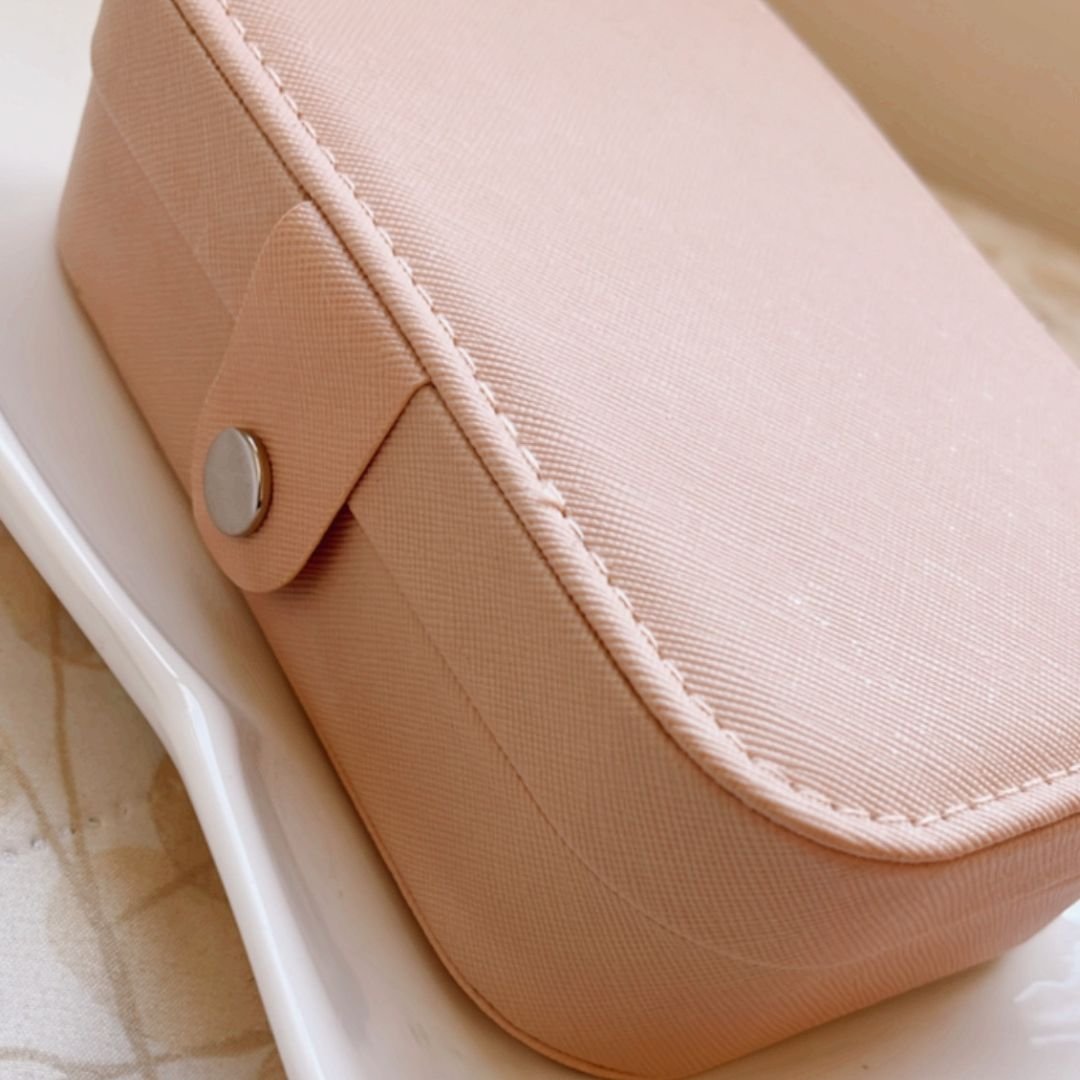 Joyero rosado diferentes compartimientos.