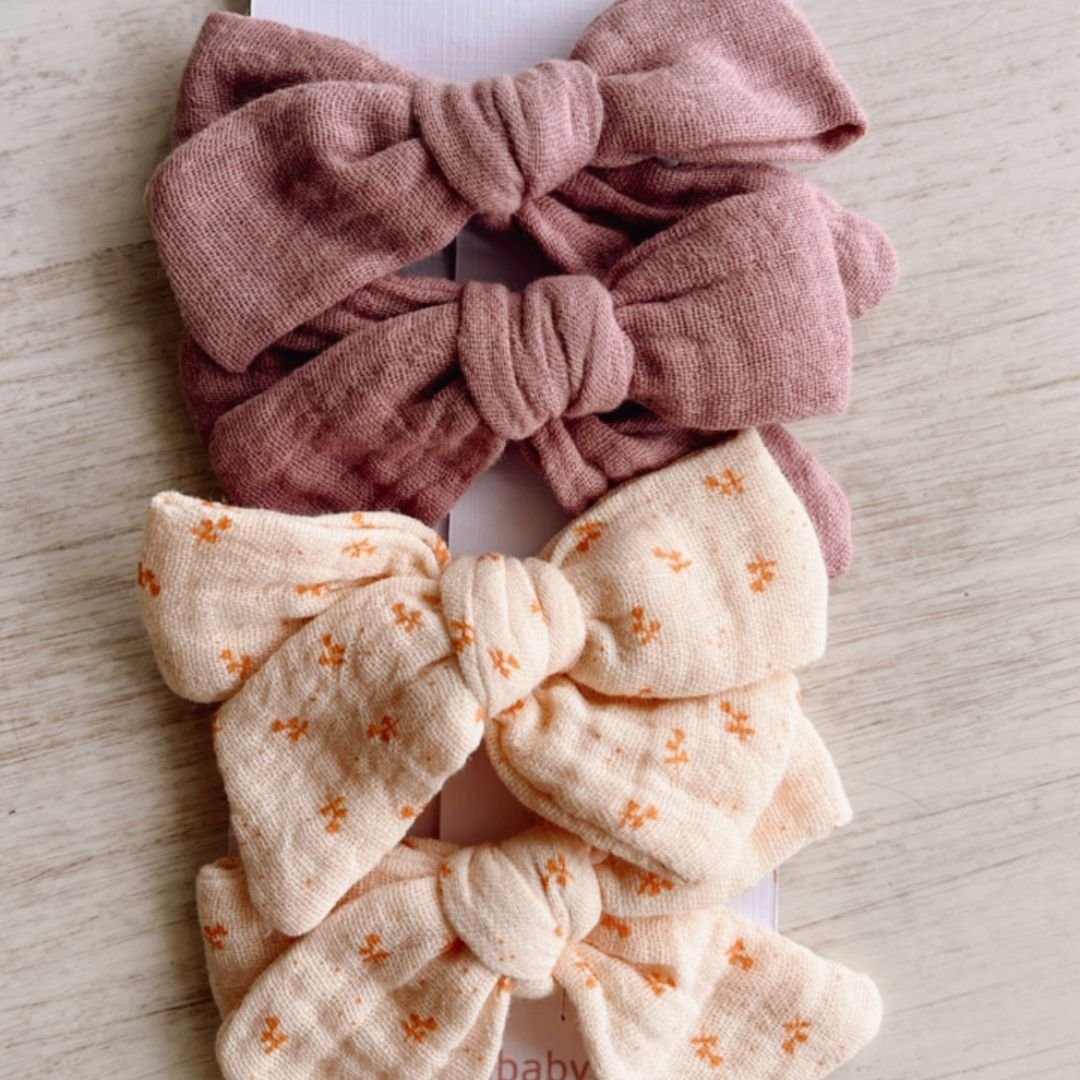 Es un pequeño clip o pasador que está confeccionado en tela de muselina. La muselina es una tela ligera y transpirable que se utiliza a menudo para confeccionar ropa y mantas para bebés. Los pinches de muselina se utilizan normalmente para decorar el cabello.